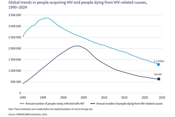 Además, en 2024 se registraron 630.000 muertes por causas relacionadas con el HIV y 1,3 millones de nuevas infecciones; aunque desde 2010 las muertes relacionadas con el HIV han disminuido en un 54% y las nuevas infecciones en un 40%, la reducción de fondos de ayuda internacionales en 2025 ha puesto en peligro estos avances, lo que demuestra que la lucha contra esta enfermedad aún no ha concluido.
