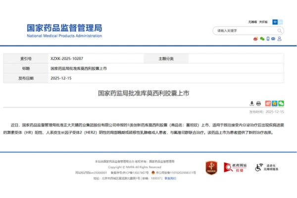 Recientemente, la Administración Estatal de Medicamentos y Alimentos de China (NMPA) ha dado oficialmente su aprobación al lanzamiento de Culmerciclib Capsules (nombre comercial: Saitanshin®), un medicamento innovador de categoría 1 desarrollado independientemente en China.